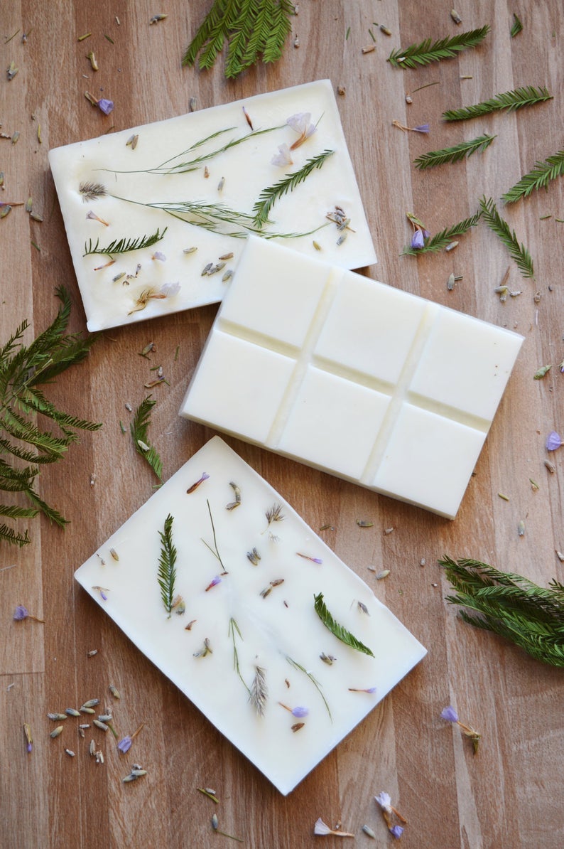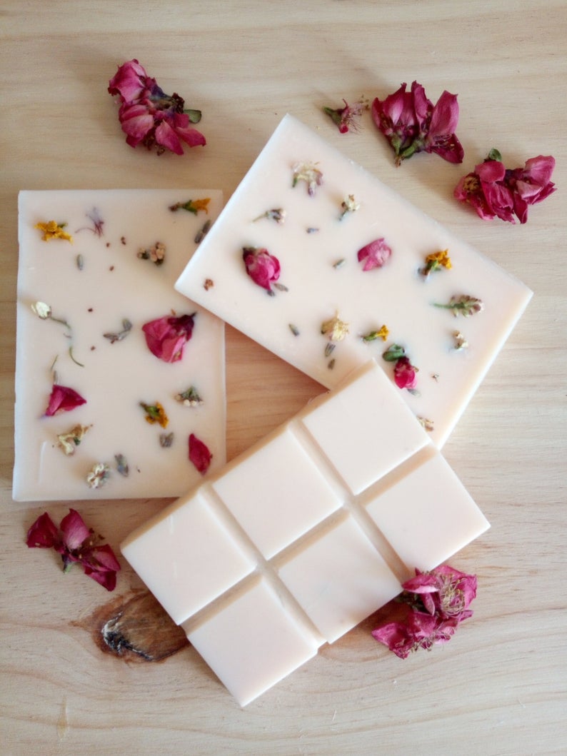 Des bougies et des fondants de cire de colza parfumés aux délicates et poétiques inclusions de fleurs… C’est beau, et tellement parfait pour un petit cadeau !