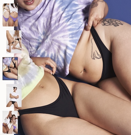Pas mal de modèles de culottes de règles aux formes et couleurs variées, allant du noir aux motifs colorés ! Mais on reste quand même essentiellement sur des basiques unis (culotte, shorty, taille haute etc). Pas de modèle inclusif de type boxer.