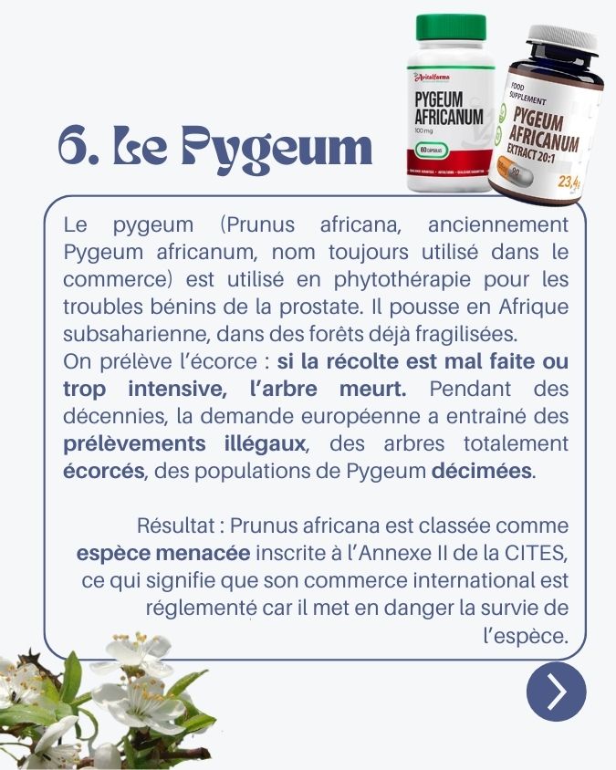 Comme pour les autres plantes évoquées ici, l’enjeu n’est pas de bannir définitivement le pygeum, mais de ralentir sa consommation, de questionner l’origine des produits, et d’accepter qu’il n’existe pas toujours une plante “miracle” sans impact.
