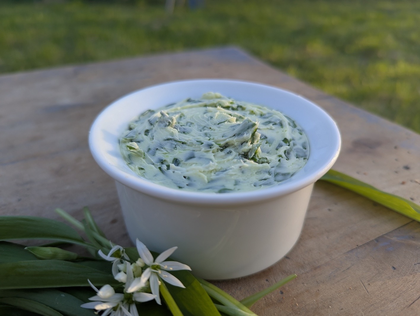 Pour préparer rapidement un beurre à l’ail des ours, mélangez du beurre ramolli avec des feuilles d’ail des ours finement hachées. Ajoutez du sel, du poivre et éventuellement un peu de jus de citron. Formez une motte ou mettez le dans un pot, et réfrigérez pendant au moins une heure !