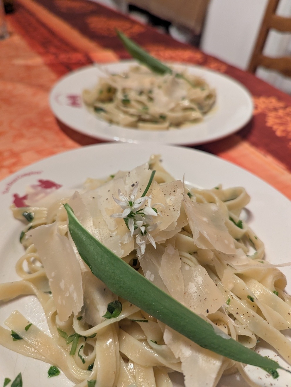 La photo ne rend pas honneur au plat, mais les pâtes à l’ail des ours + parmesan, on est sur quelque chose de quasi orgasmique.