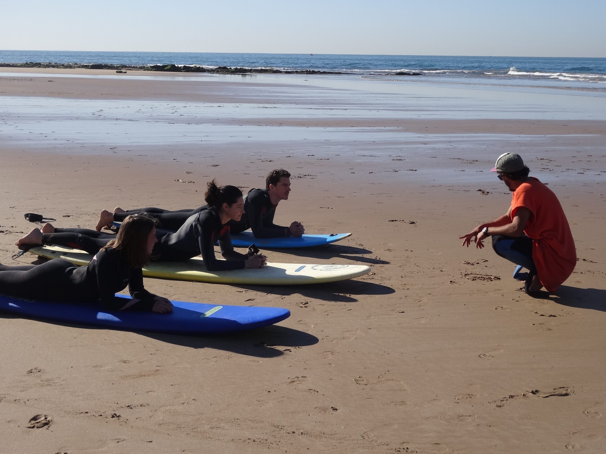 Haytam est notre prof de surf. Très compétent et surtout très pédagogue, il sait s’adapter à tous les niveaux et a su aussi bien me conseiller moi qui suis débutante que mon homme qui a un niveau plutôt avancé. Nous somme très peu nombreux, alors Haytam peut vraiment bien se consacrer à chacun d’entre nous. Il est sans cesse dans l’eau avec nous, avec un œil sur tout le monde. Après chaque vague il corrige nos postures et nous donne des conseils pour nous améliorer : « Le pied avant plus à 45 degrés! Le poids du corps plus vers l’avant ! Plie plus tes jambes ! Tu es tombée parce que tu étais trop sur la droite ! » et toujours avec le sourire, avec humour et plein d’encouragements parce qu’on n’est pas à l’armée non plus ?! Et c’est grâce à ce genre retour super précis après chaque vague et mille autres conseils (et aussi grâce à ma centaine de chutes :D) que j’ai réussi à progresser à une vitesse que je n’aurais jamais cru possible !